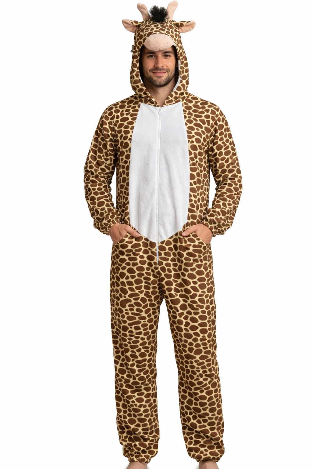 Giraffenkostüm Herren Overall mit Kapuze – Tierkostüm Erwachsene Einteiler – Karneval Fasching Safari Verkleidung Tieranzug JGA Festival Safari-Kostüm