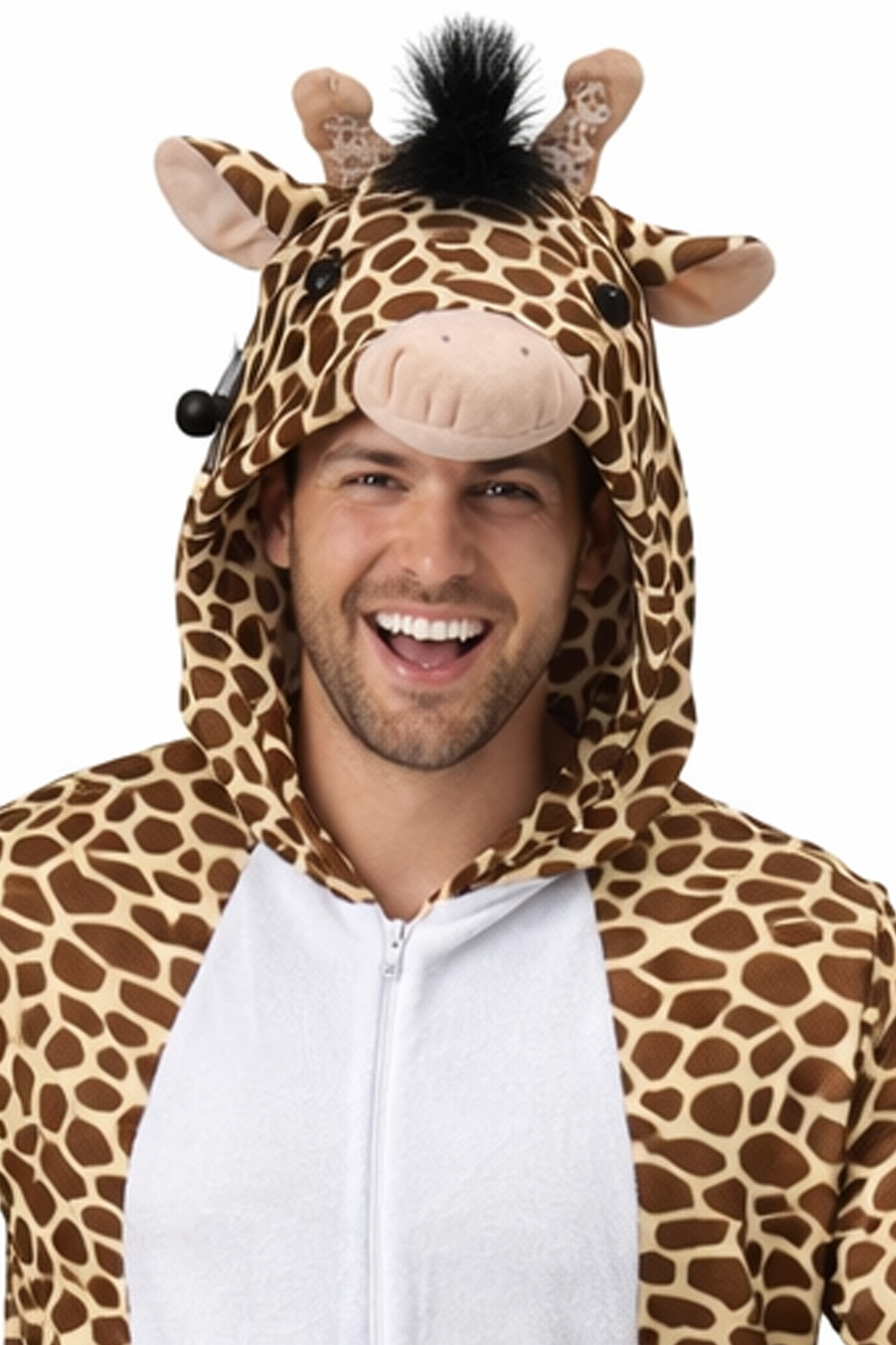 Erhältlich in den Größen M, L, XL, XXL, XXXL und XXXXL – damit wirklich jeder Giraffen-Fan das passende Kostüm findet.