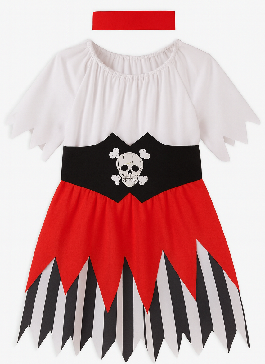 Piratenkostüm Kinder Mädchen – Seeräuber Kostüm mit Rock, Oberteil, Gürtel & Kopfband