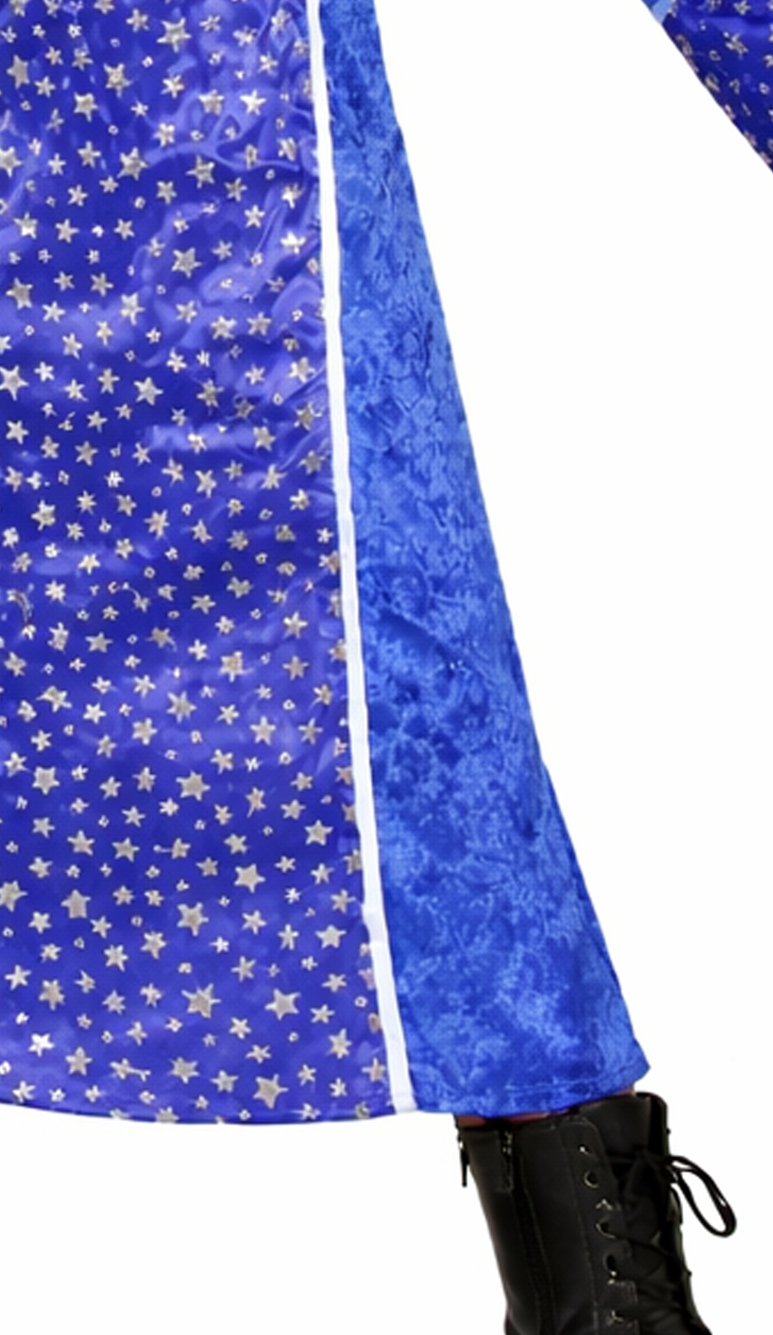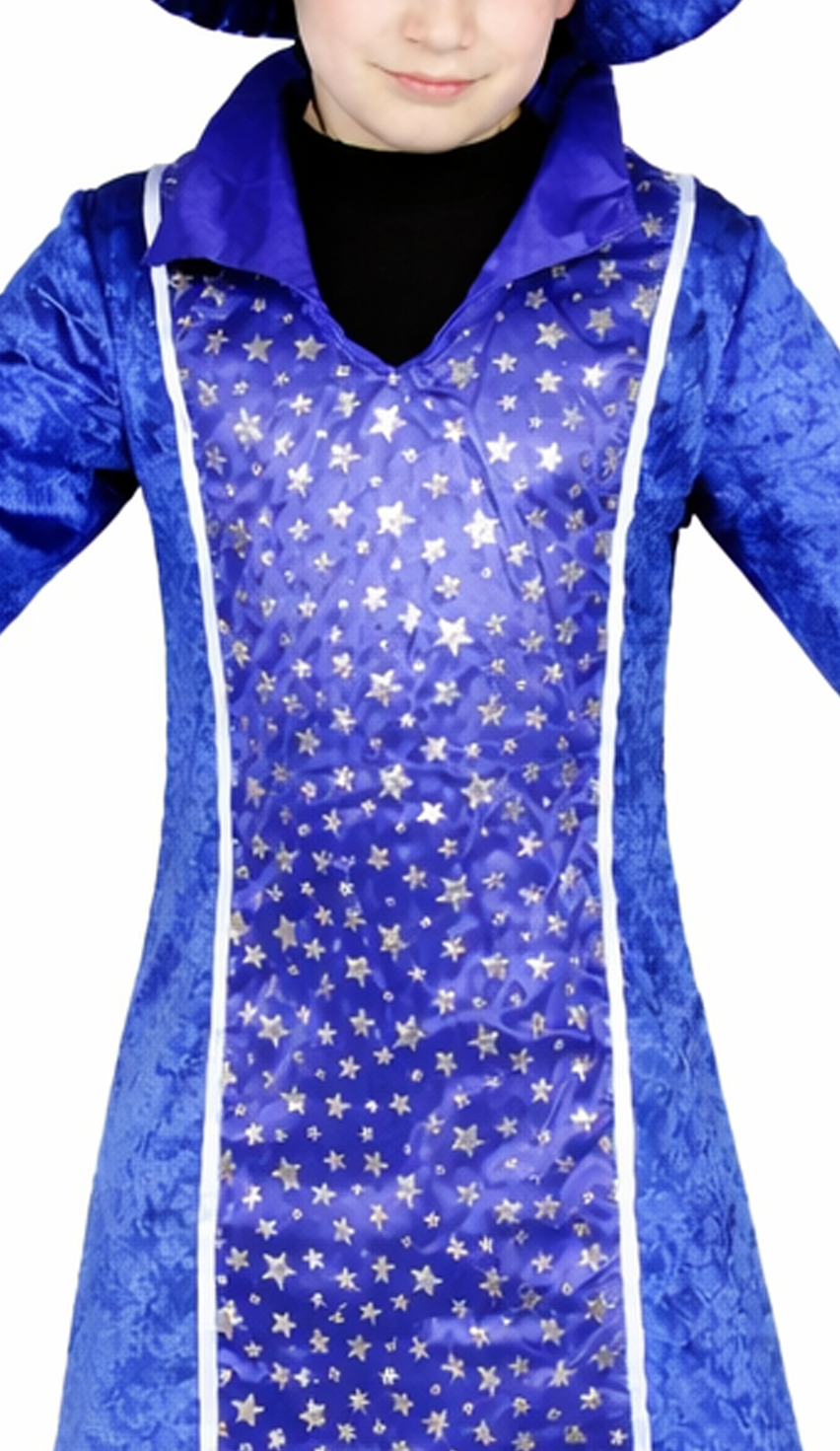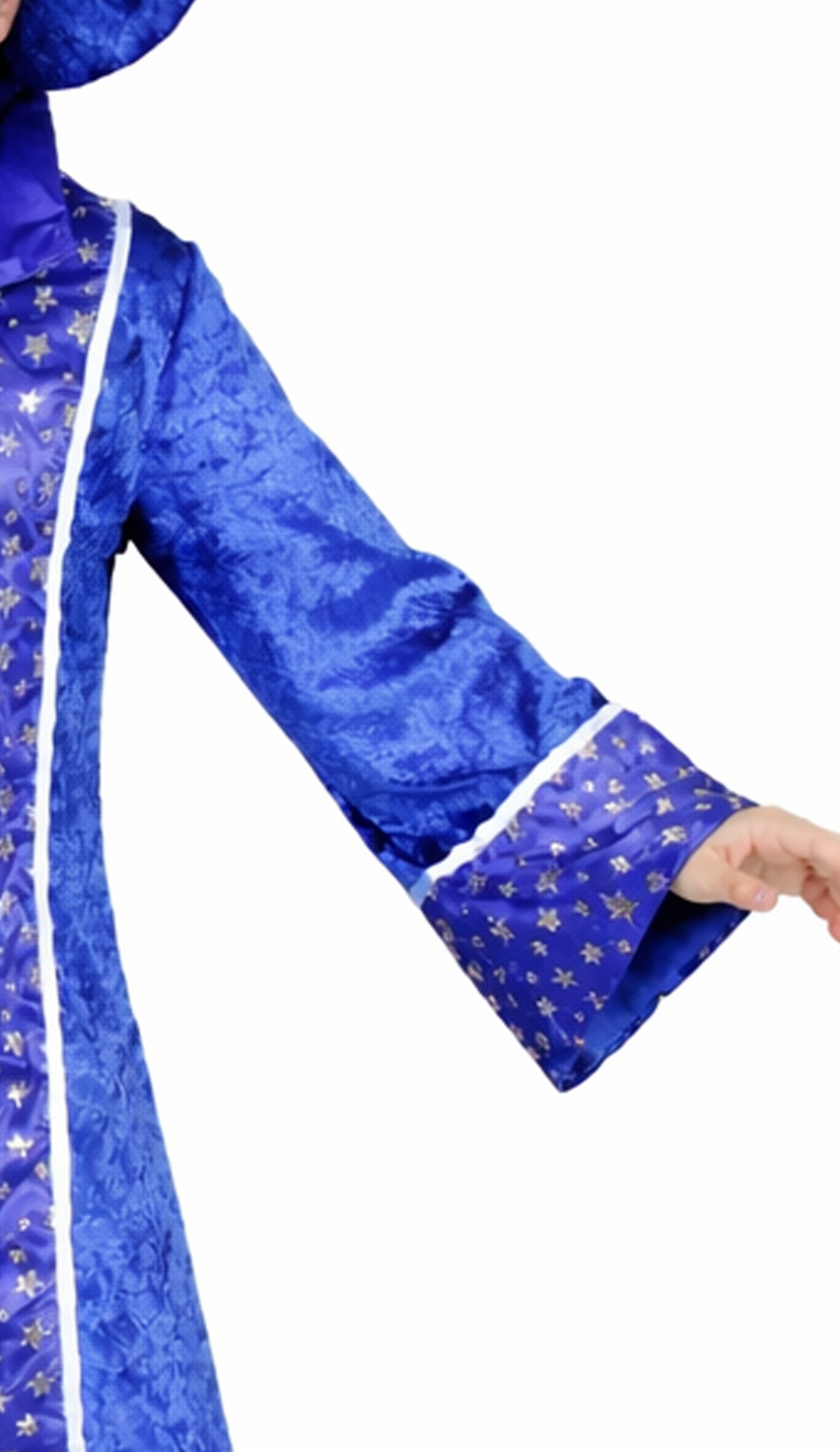 Die Farbe Blau ist ein echter Klassiker unter den Zauberer-Outfits und wirkt gleichzeitig frisch und auffällig. Das Sternenmuster verstärkt den magischen Eindruck und macht das Kostüm zu einem Hingucker, ohne dass es aufdringlich wirkt. Dadurch passt es sowohl für kleine Zauberlehrlinge als auch für etwas ältere Kinder, die einen „coolen“ Fantasy-Look bevorzugen.