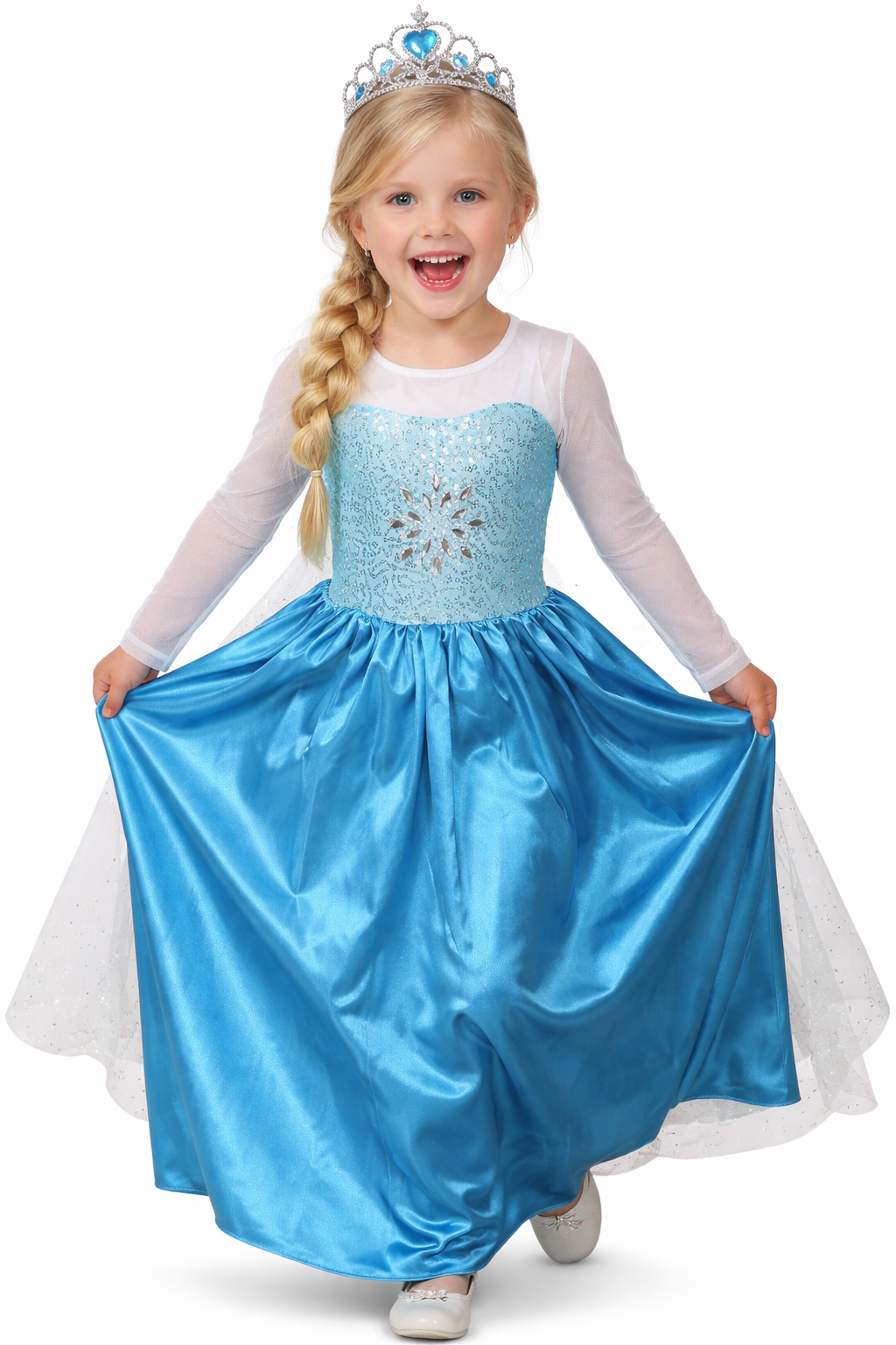 Eisblaues Prinzessinnenkleid mit Schneeflocken-Motiv vorne